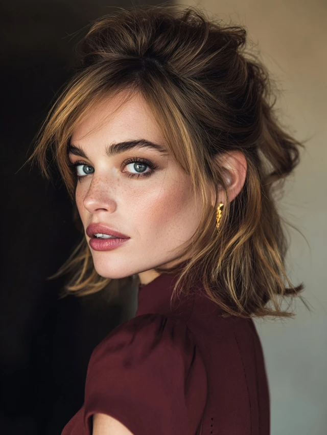 Short half up half down hairstyles work because they combine the ease of wearing hair down with the structure of an updo. Pulling back the top section adds lift, frames the face, and highlights facial features.