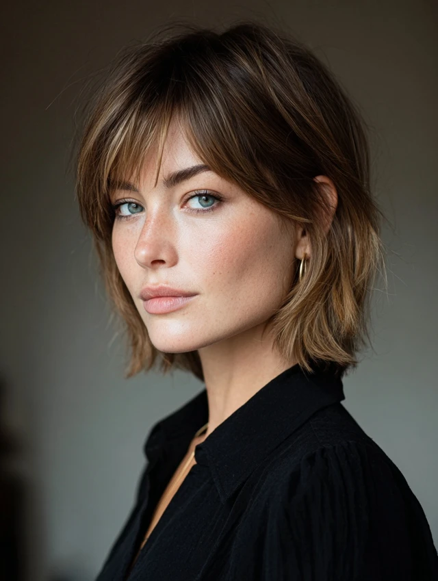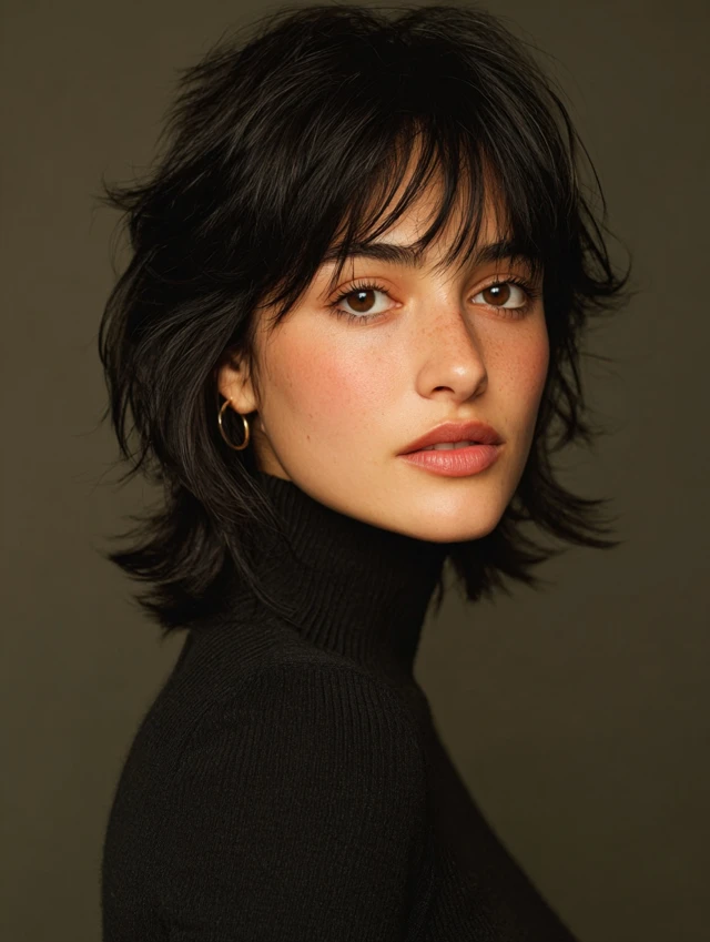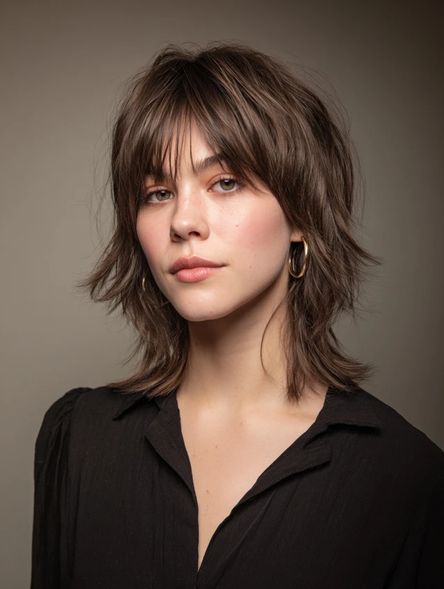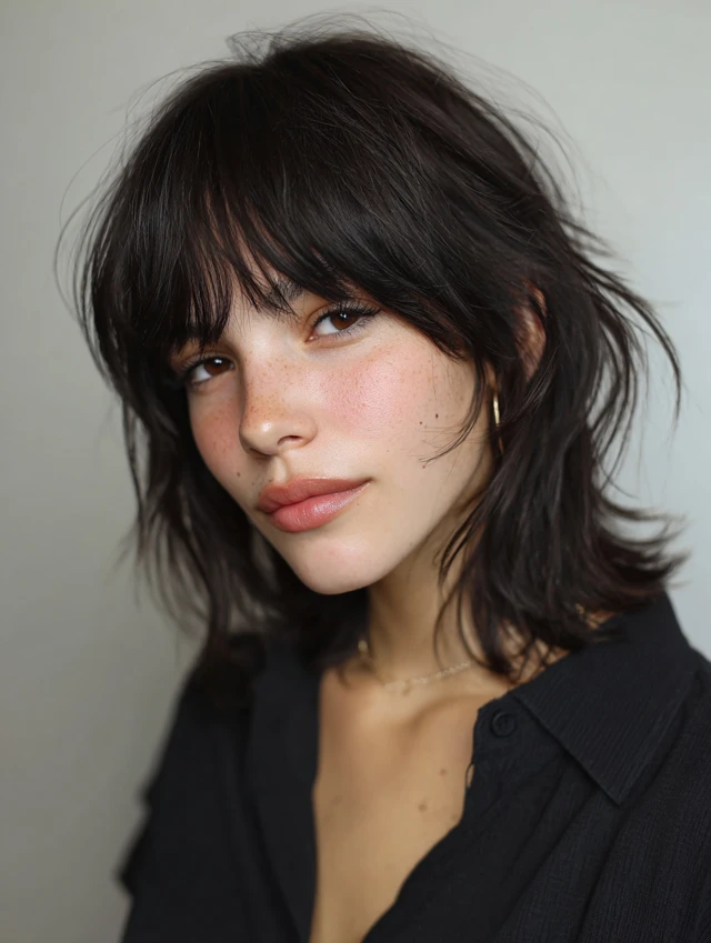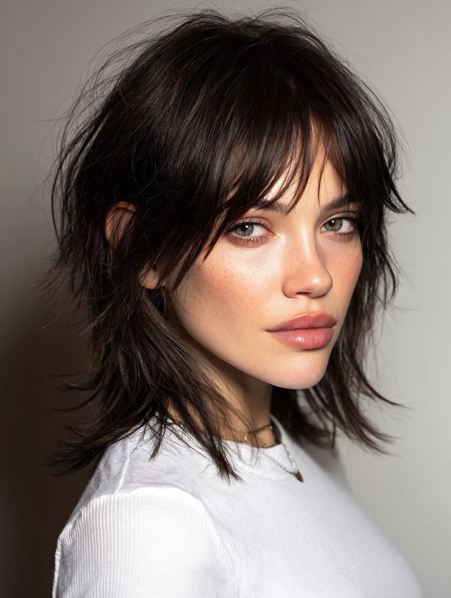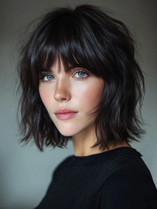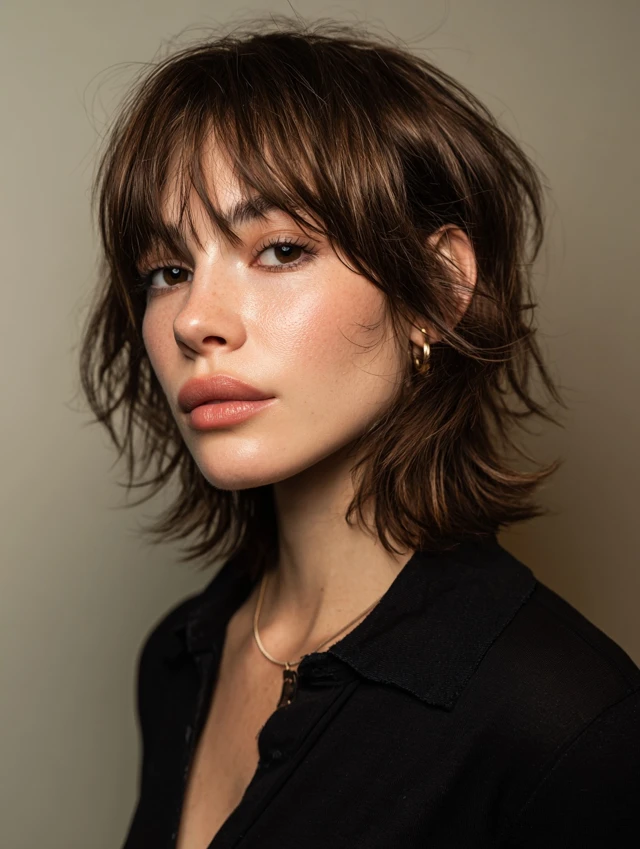 To nail this look, ask your stylist for choppy layers at the crown, longer textured ends, and soft curtain bangs. Use a light mousse, cream, or texturizer to enhance texture. Air-dry or diffuse lightly for volume and movement. Regular trims every 6–8 weeks keep the cut fresh and maintain the perfect balance between edgy layers and soft bangs.