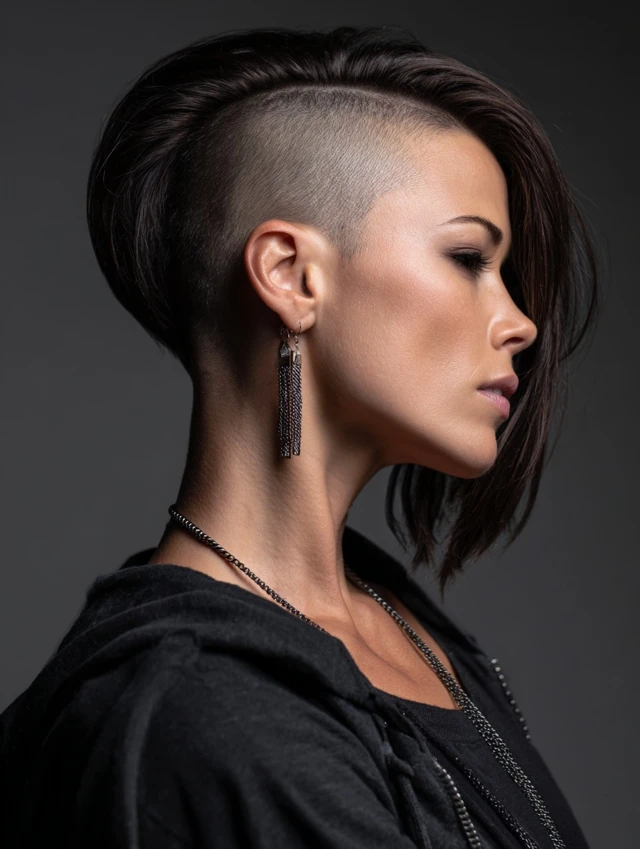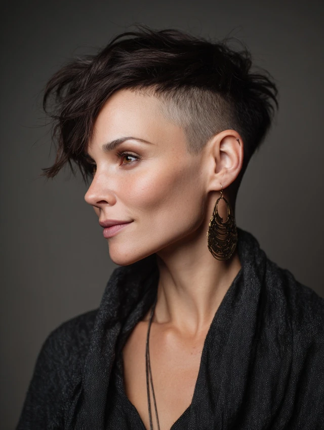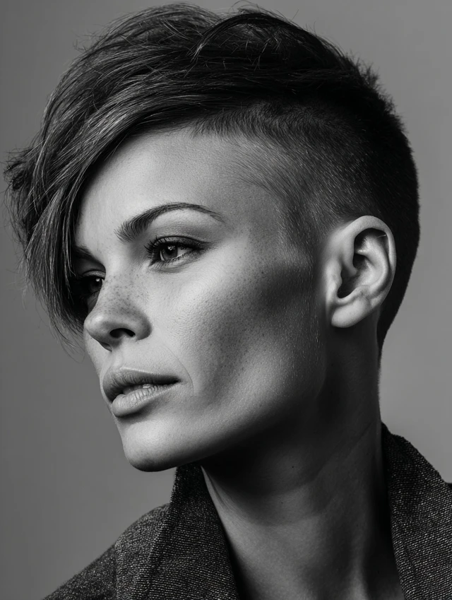 Side-shaved hairstyles work because the shaved section adds an edgy, modern flair while the longer hair balances the look. The contrast highlights cheekbones and jawline effectively.
