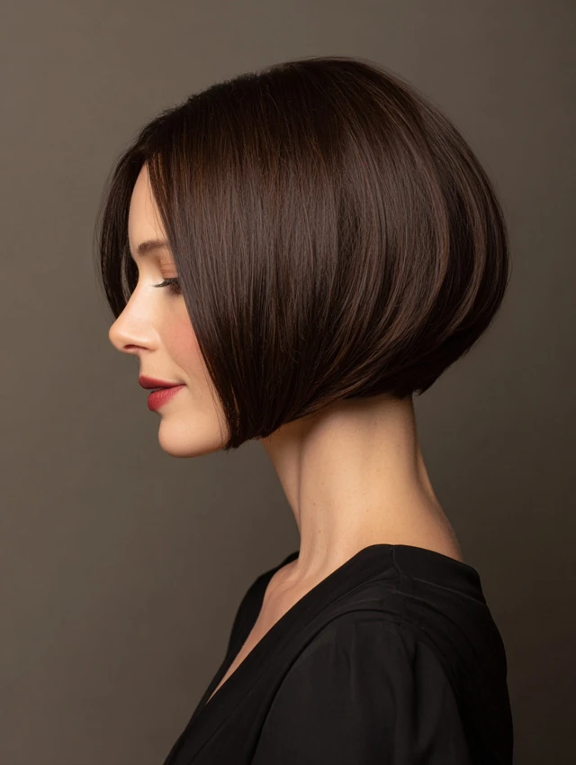 The classic stacked bob features layers stacked at the back for natural lift and a smooth, rounded shape. It creates volume and body for fine hair while keeping the front sleek.