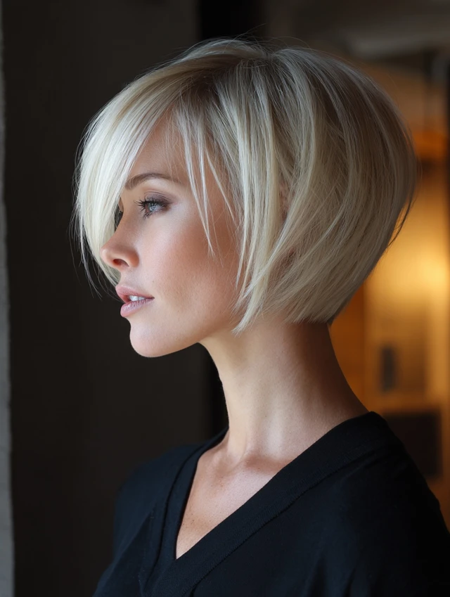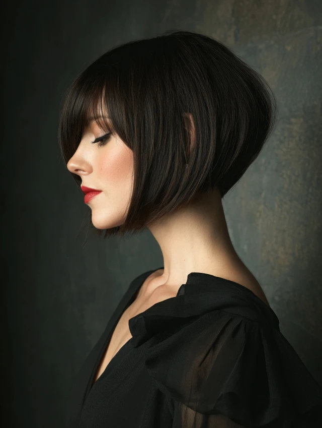 Stacked Bob with Side-Swept Bangs