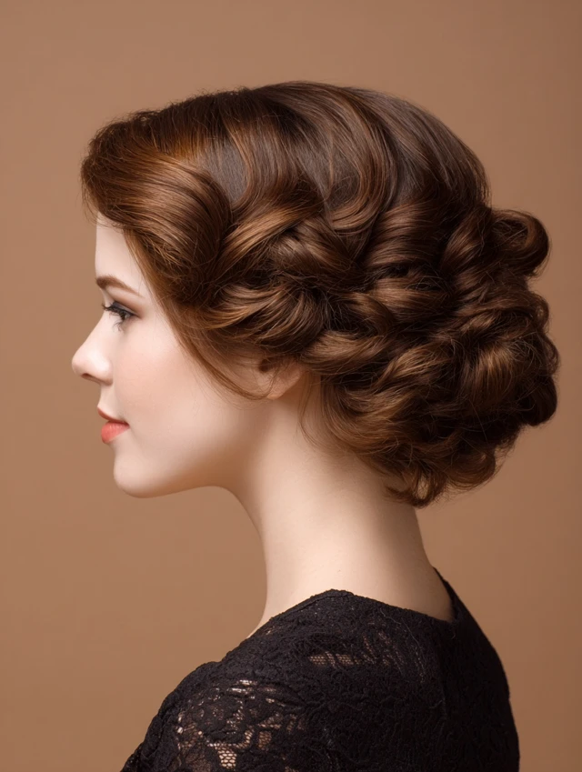 Styling involves curling hair, pinning sections strategically, and finishing with hairspray or setting products. Ideal for weddings, evening events, or vintage-themed occasions. Regular maintenance ensures pins and curls stay intact.