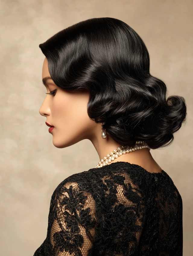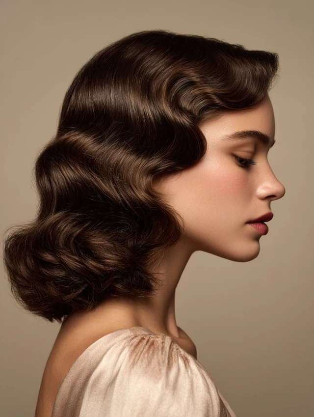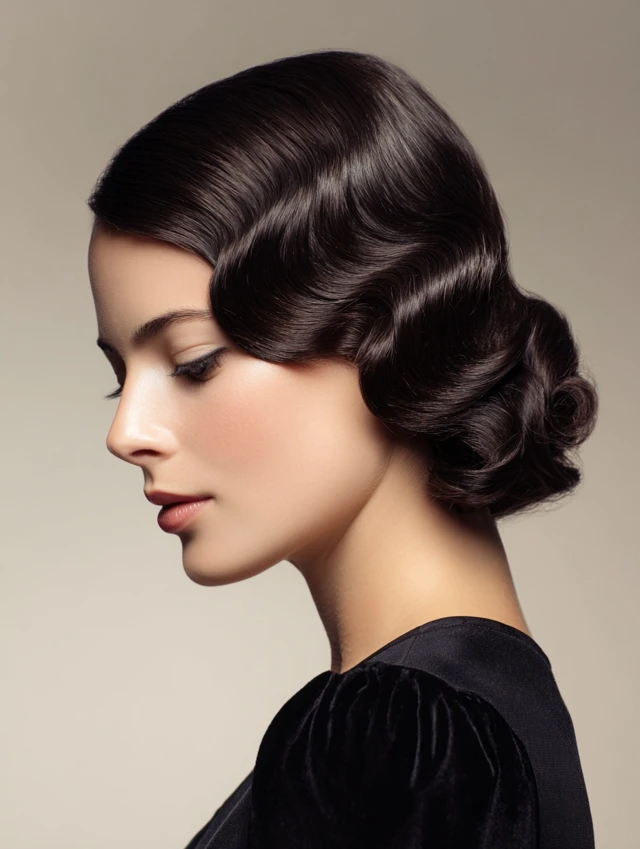 Finger waves create smooth, sculpted waves close to the scalp, popular in the 1920s and 1930s. Works well for oval, round, and heart-shaped faces. Medium to thick hair holds wave patterns effectively.