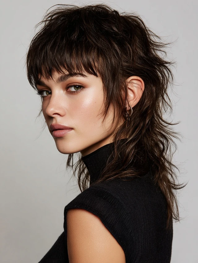 The wolf mullet combines shorter top layers with longer, slightly tapered ends. It delivers bold, edgy movement while remaining wearable. This style works well for thick and wavy hair. Oval and square faces benefit most from the balance it provides.